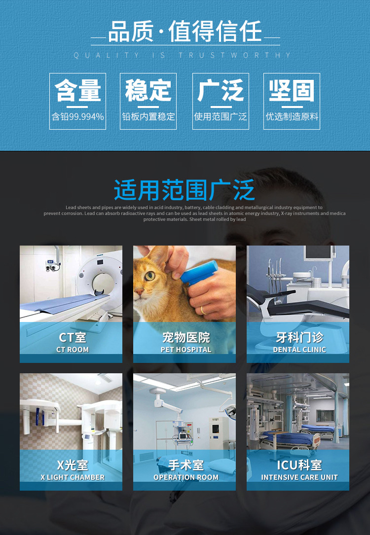 防輻射鉛板的原料——鉛。早在7000年前人類就已經(jīng)認(rèn)識(shí)鉛了。它分布廣,容易提取,容易加工,既有很高的延展性,又很柔軟,而且熔點(diǎn)低。在《圣經(jīng)·出埃及記》中就已經(jīng)提到了鉛。鉛是人類**早使用的金屬之一,公元前3000年,人類已會(huì)從礦石中熔煉鉛。鉛在地殼中的含量為0.0016%,主要礦石是方鉛礦。